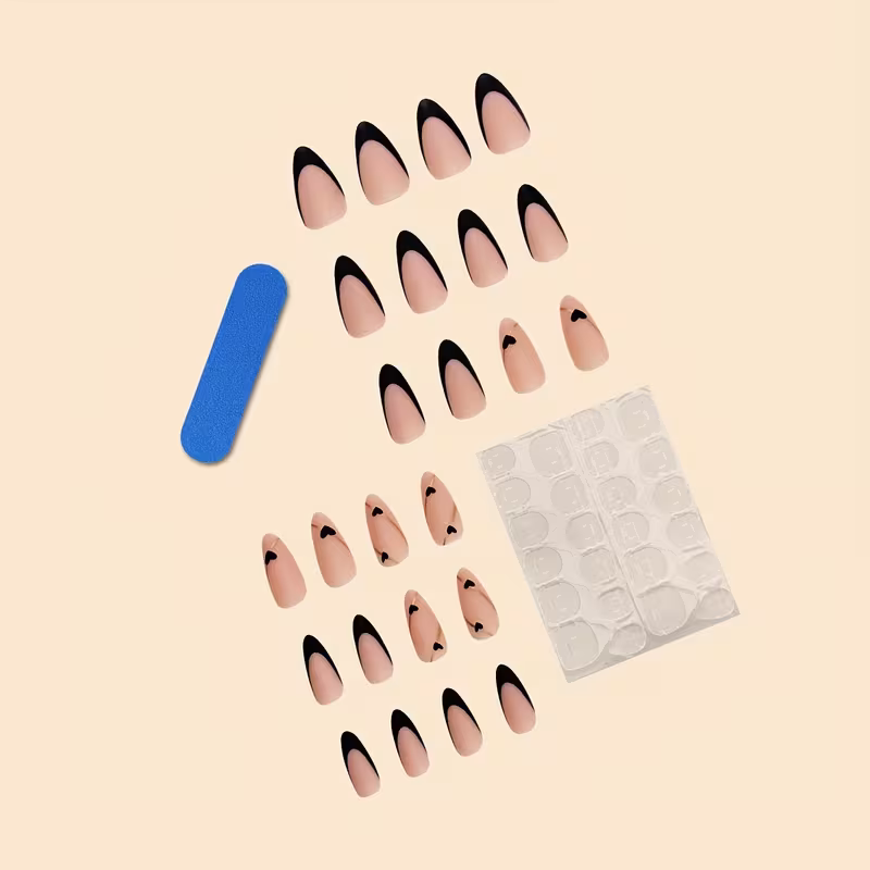 Make a bold and romantic statement with these stunning long black matte French heart press-on nails. Designed for women who love elegant yet edgy nail styles, this full-cover nail set delivers a salon-quality manicure in minutes — no appointment required.