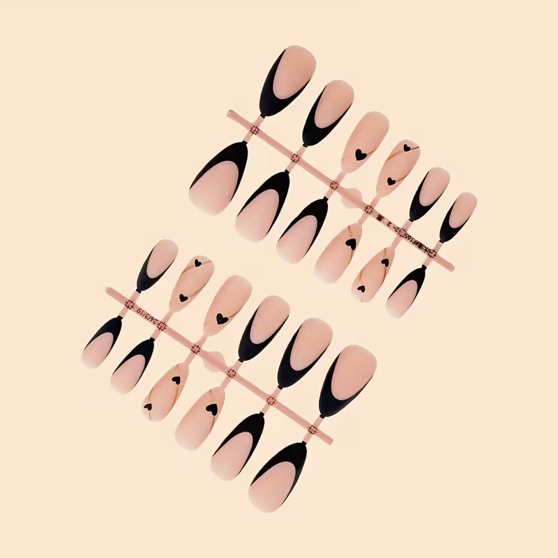 Add these elegant black French heart press-on nails to your cart today and enjoy instant salon-style glamour anytime, anywhere.