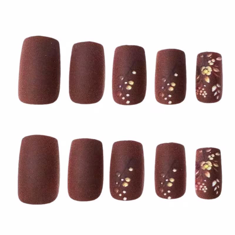Add these hot-selling matte brown floral press-on nails to your cart today and enjoy a flawless, salon-style manicure anytime, anywhere.
